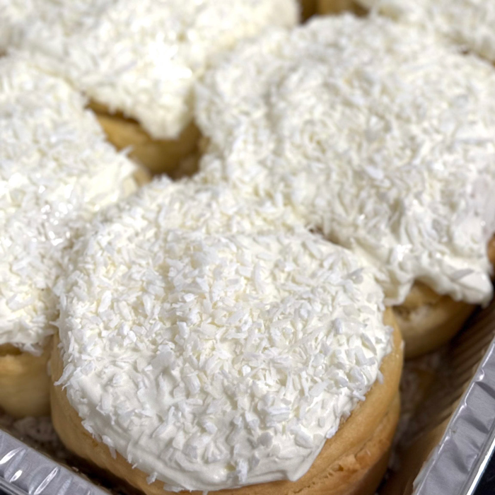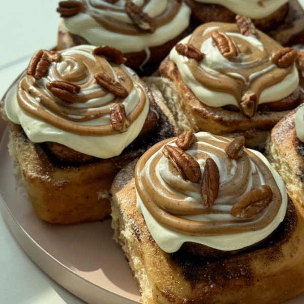 Mleko, drożdże, izomalt, mąka pszenna, sól, jajka, syrop z agawy, masło, cynamon, kakao, serek Philadelphia, mascarpone, śmietanka, inulina, masło orzechowe, orzech pecan, erytrytol.